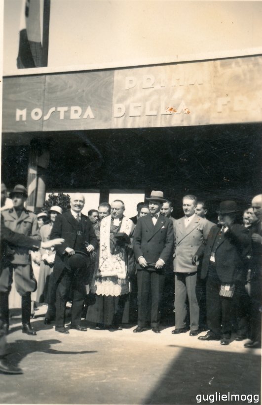 PRIMA MOSTRA DELLA FRAGOLA: Le autorità durante l’inaugurazione. X. XXX, cav. can. Davide Corino, Y. YYY, Z. ZZZ ed il Podestà geom. Paletto.